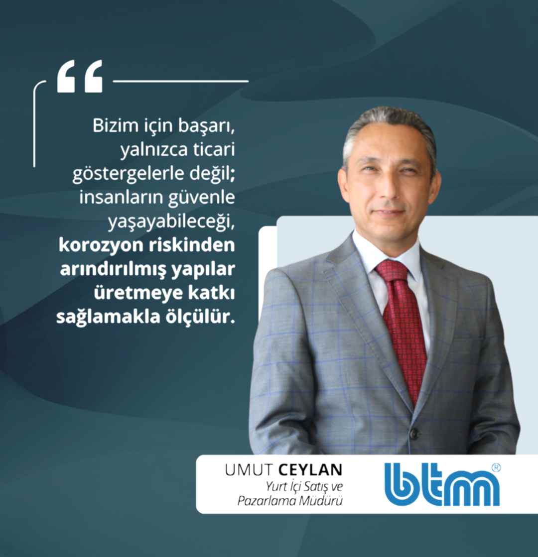 BTM Yurt İçi Satış ve Pazarlama Müdürü Umut Ceylan, 2025 yılına ilişkin değerlendirmelerinde su yalıtımında doğru sistem yaklaşımının yapı güvenliği açısından vazgeçilmez olduğunu vurguladı. Sektördeki dönüşüm sürecini ve uygulama kalitesinin önemini aktaran Ceylan, BTM’nin çözüm odaklı yaklaşımını BİTÜDER Blog’a anlattı.